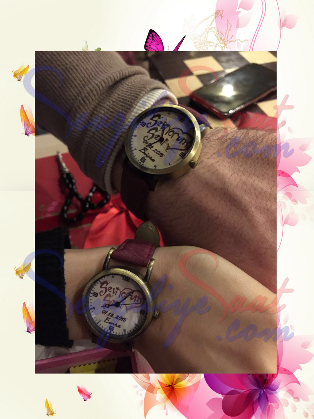 Sevgililere, Çiftlere Özel Basklı Kombin Saatler